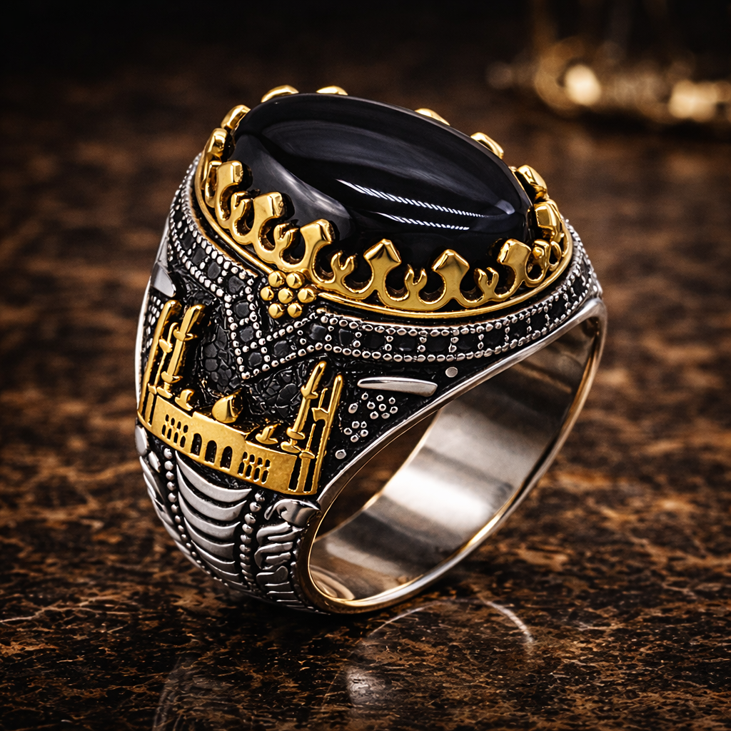 A commanding statement of heritage and presence, forged in sterling silver and crowned with deep black onyx.
